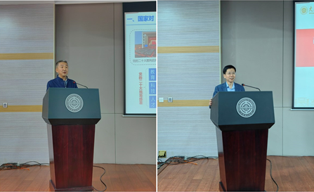 学校党政办公室主任兼学科建设办公室主任康旭东同志、学校党政办公室副主任兼政策研究室主任姚化成同志分别以《一流大学及学科建设的实践与思考》《全面建设中国特色一流大学》为题,紧扣党中央关于教育、科技、人才“三位一体”的战略部署,围绕学校一流大学及学科建设的总体布局、面临的新形势和主要问题、下一步的重点任务等方面,进行深入全面讲解。