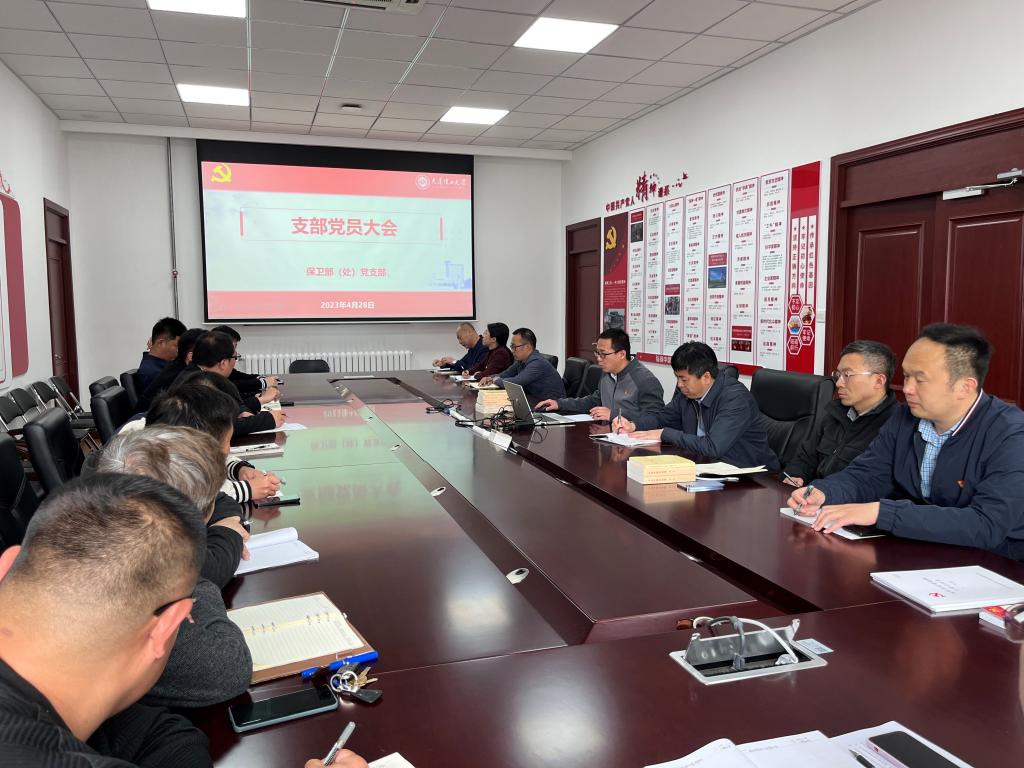 4月28日下午,保卫处党支部在三楼“党员之家”召开支部党员大会暨学习贯彻习近平新时代中国特色社会主义思想主题教育动员大会。会议由党支部书记李伟主持。