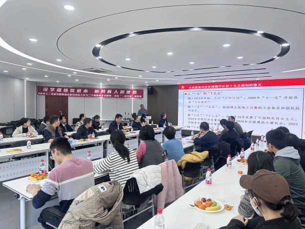 首先,船舶教工第二党支部书记刘松同志主讲《学习党的二十届四中全会精神》专题党课。他系统解读了“十五五”时期国家发展的指导思想、目标任务与“十二项重大部署”,并深入剖析了高等教育在建设现代化产业体系、推动科技自立自强等国家战略中所肩负的时代使命。