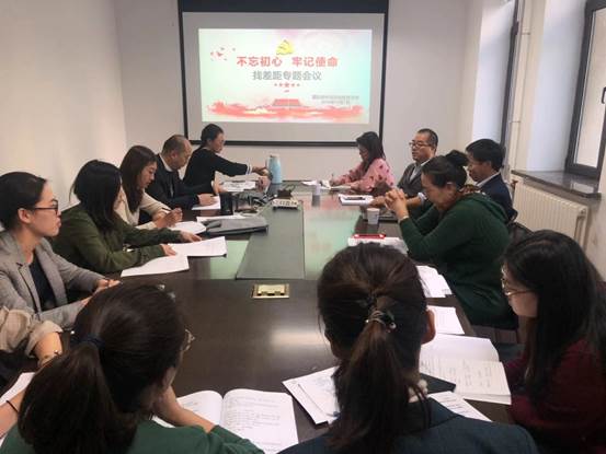 11月7日下午,国际合作与交流处党支部召开“不忘初心、牢记使命”主题教育专题党支部大会,机关党委委员姚化成到会指导,国际合作与交流处在校全部党员参加,会议由党支部书记孟林茜主持。
