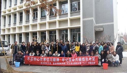 2019年是伯川图书馆开馆20周年纪念,修缮一新的伯川图书馆即将开馆,以此为契机,图书馆党支部组织全体党员开展“不忘初心传承伯川精神 牢记使命共植绿色希望”主题党日暨党员志愿活动,在伯川图书馆周围种植树木,为构建环境优美、生态和谐的校园环境,提高校园文化品位尽自己的一份绵薄之力。