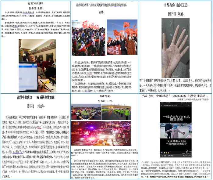党员们分享的故事感动了支部所有党员,使党员们加深了对奋斗在一线的各行各业人员的敬意,也更深刻的感受到了社会主义制度的优越性,进一步激发广大党员的爱国热情和奉献精神。党员们纷纷表示,作为一名党员,祖国和人民的需要就是召唤,就是命令。每名党员都应立足岗位,为抗击疫情,为祖国和人民,为师生读者贡献自己的力量。