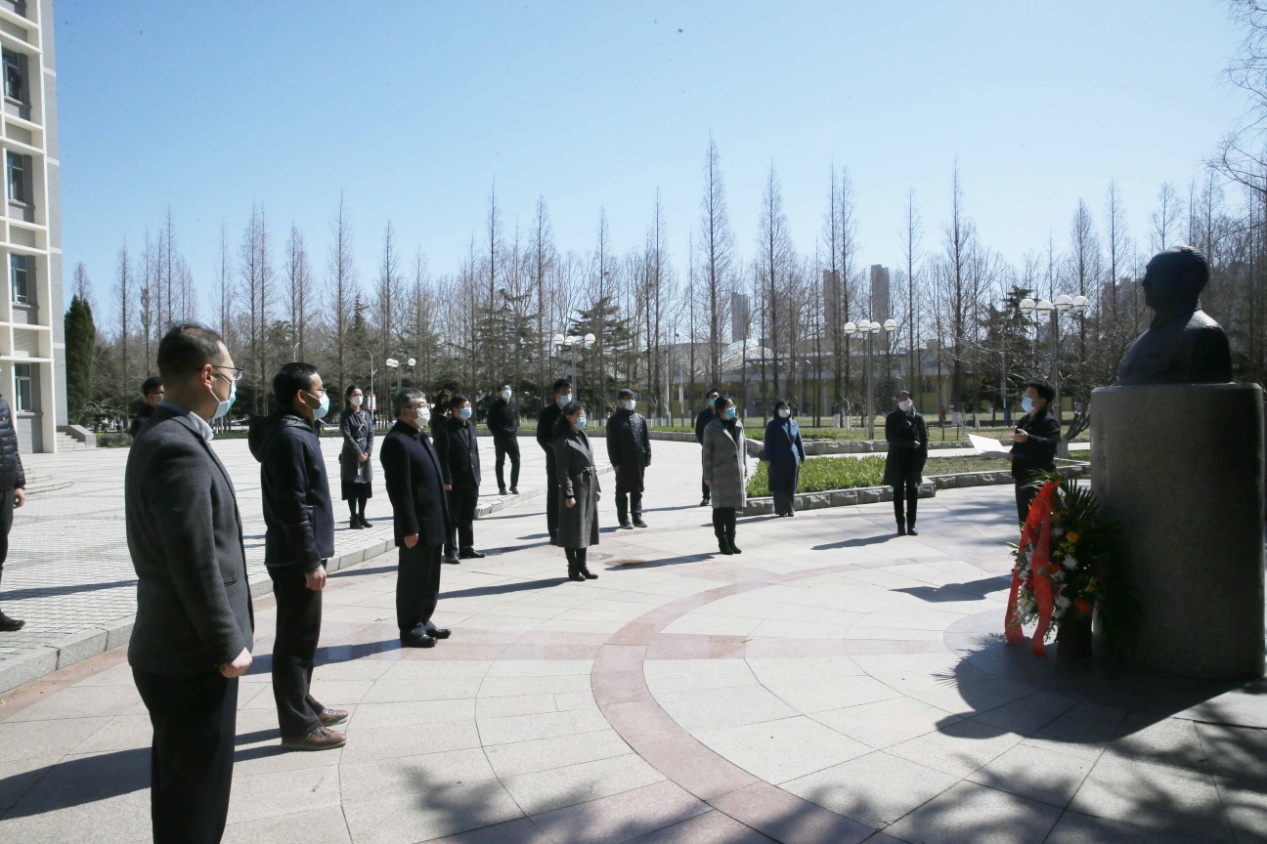 清明时节寄哀思。4月4日上午,学校办公室党支部开展主题党日活动,在伯川图书馆南门屈伯川老院长塑像前,深切缅怀屈伯川老院长,表达怀念、追思与景仰之情。学校办公室党支部全体成员、1+1共建支部马克思主义中国化研究所教工党支部成员参加活动。活动由学校办公室党支部书记屈丽虹主持。