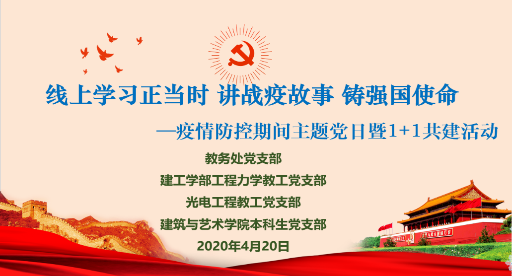 4月20日下午,教务处党支部通过在线视频的方式开展了“线上学习正当时 讲战疫故事 铸强国使命”主题党日暨“1+1”共建活动。