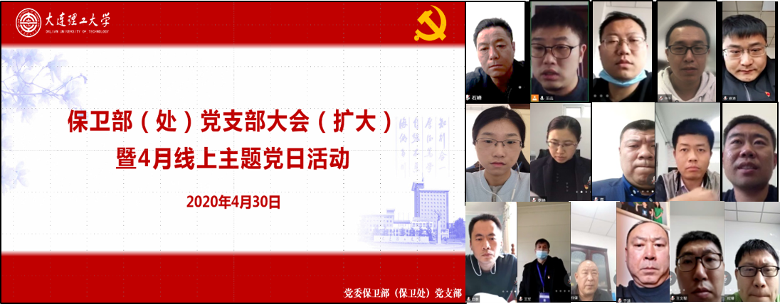 4月30日下午,保卫处党支部以“坚持四个强化,夯实党建根基”为主题,通过线上视频会议方式召开4月党支部(扩大)会议。