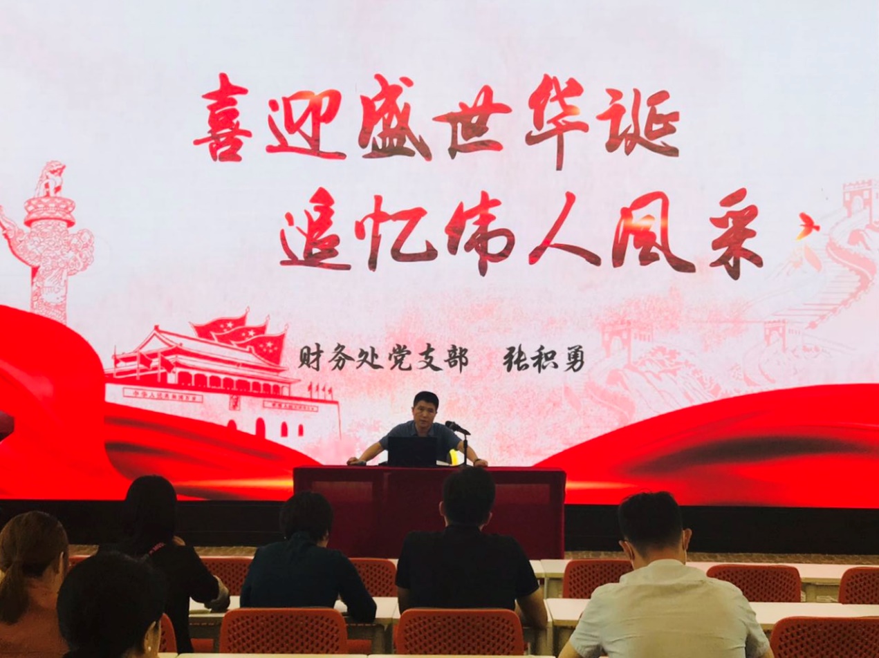 参观结束之后,机关党委委员、财务处处长张积勇以《喜迎盛世华诞,追忆伟人风采》为题讲授党课。党课开篇引用了习近平总书记在纪念毛泽东同志诞辰120周年座谈会上的讲话,对毛泽东同志的一生进行评价。张积勇指出毛泽东诗词高度浓缩了毛泽东的人生追求和丰富实践,艺术呈现了传统文化的源远流长和毛泽东的文化自信。以毛泽东诗词为切入点,张积勇提炼出毛泽东同志笔下关于共产党员初心、民族精神、大我小我、抗疫智慧四个方面的思想脉络,深入解读毛泽东思想的精神实质和当代价值。张积勇强调各位党员要牢记“两个务必”,切实深入开展“四史”学习,要从历史和重要人物身上汲取信仰的力量,始终保持共产党人的先进性和纯洁性。