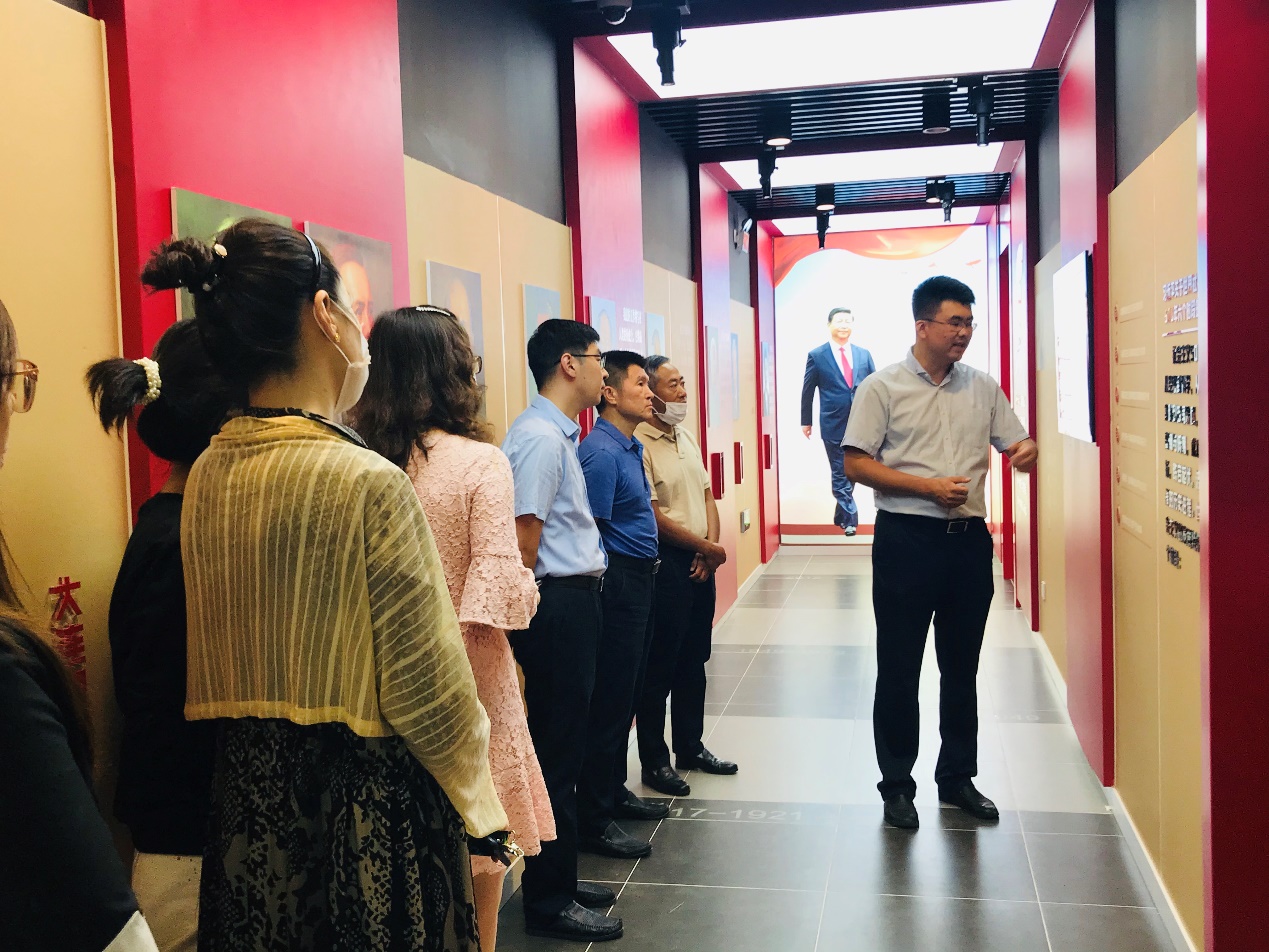 本次活动得到了马克思主义学院的大力支持,学院党委副书记张新奎全程为各位党员进行介绍和讲解。他首先介绍了马克思主义学院的辉煌历史和近年的发展,让参与本次活动党员对马克思主义学院有全面的认识。接下来顺着历史的长廊张新奎讲述了世界社会主义从空想社会主义到科学社会主义再到中国特色社会主义的波澜壮阔的历史进程。移步至主题旋转回廊,张新奎从“五位一体”、“四个全面”、大国外交、强军之路等多个视角讲述了习近平新时代中国特色社会主义思想的主要内容,介绍了新时代以来我们党取得的一系列成就,同时有机地融入了大工人建造设计或参与建造设计的典型大国重器模型,激励在场党员们自觉传承大工红色基因,用实际行动践行共产党人的初心和使命。