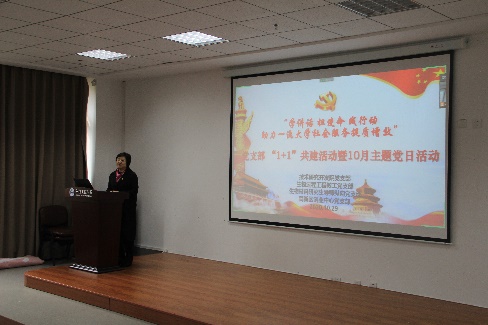 为落实深入一线规则,建立技术研究开发院服务院系、服务师生的长效机制,10月29日下午,技术研究开发院党支部联合生物过程工程教工党支部、生物材料研究生导师纵向党支部,开展“学讲话 担使命 践行动 助力一流大学社会服务提质增效”的主题党日暨“1+1”支部共建活动。活动由技术研究开发院党支部书记张博同志主持。