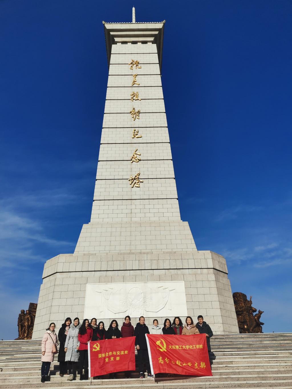 为深入学习贯彻习近平总书记在纪念中国人民志愿军抗美援朝出国作战70周年大会上的重要讲话精神,深化“不忘初心,牢记使命”主题教育成果,11月28日至29日,国际合作与交流处(以下简称“国际处”)党支部与共建支部化工学院高分子教工党支部一行,赴丹东开展“学四史,明心志”“1+1”共建主题党日活动,本次参观活动旨在通过缅怀革命先烈,重温党的光辉历史,激发广大党员不忘初心、牢记使命的内生动力;参观红色资源,铭记历史,继续和发扬党的优良传统。