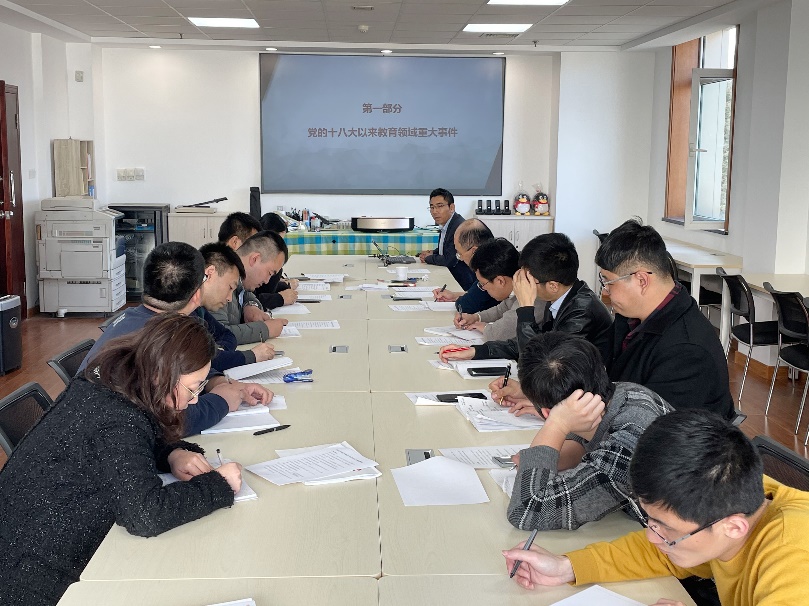 郑皓主讲《从新时代教育发展进程领悟总书记重要讲话精神》主题党课,从党的十八大以来教育领域的重大事件,取得的宝贵经验,立足岗位开新局三个方面进行了深入浅出的讲解。