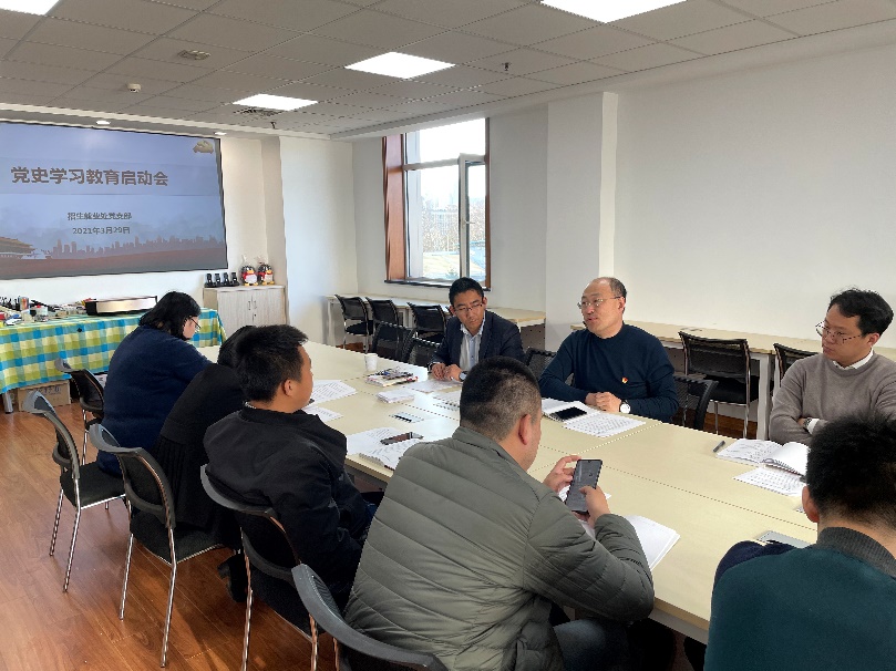 3月29日下午,招生就业处党支部在科技园大厦C座522室召开支部党员大会暨党史学习教育启动会,支部书记于海晨主持会议。