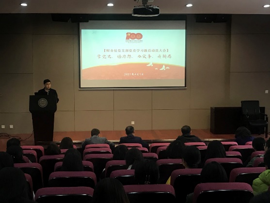 4月1日下午,财务处党支部在主楼一阶召开党史学习教育动员会议,会议还邀请了财务处普通群众共同学习党史学习教育精神,机关党委委员张积勇同志,学校副总会计师冯宝军同志以普通党员身份参加会议,会议由支部书记夏秋实同志主持。