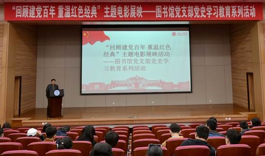 为进一步贯彻落实习近平总书记在党史学习教育动员大会上的重要讲话精神,创新党史学习教育形式,丰富校园文化生活,图书馆策划组织了“回顾建党百年 重温红色经典”主题电影展映活动,献礼建党百年。4月15日,活动启动仪式在伯川图书馆报告厅举行,仪式由图书馆党支部书记、副馆长王哲主持,图书馆党支部、纪委监察统战党支部、科研院党支部和环境教工党支部党员以及报名参加活动的部分学生共同参加了启动仪式。
