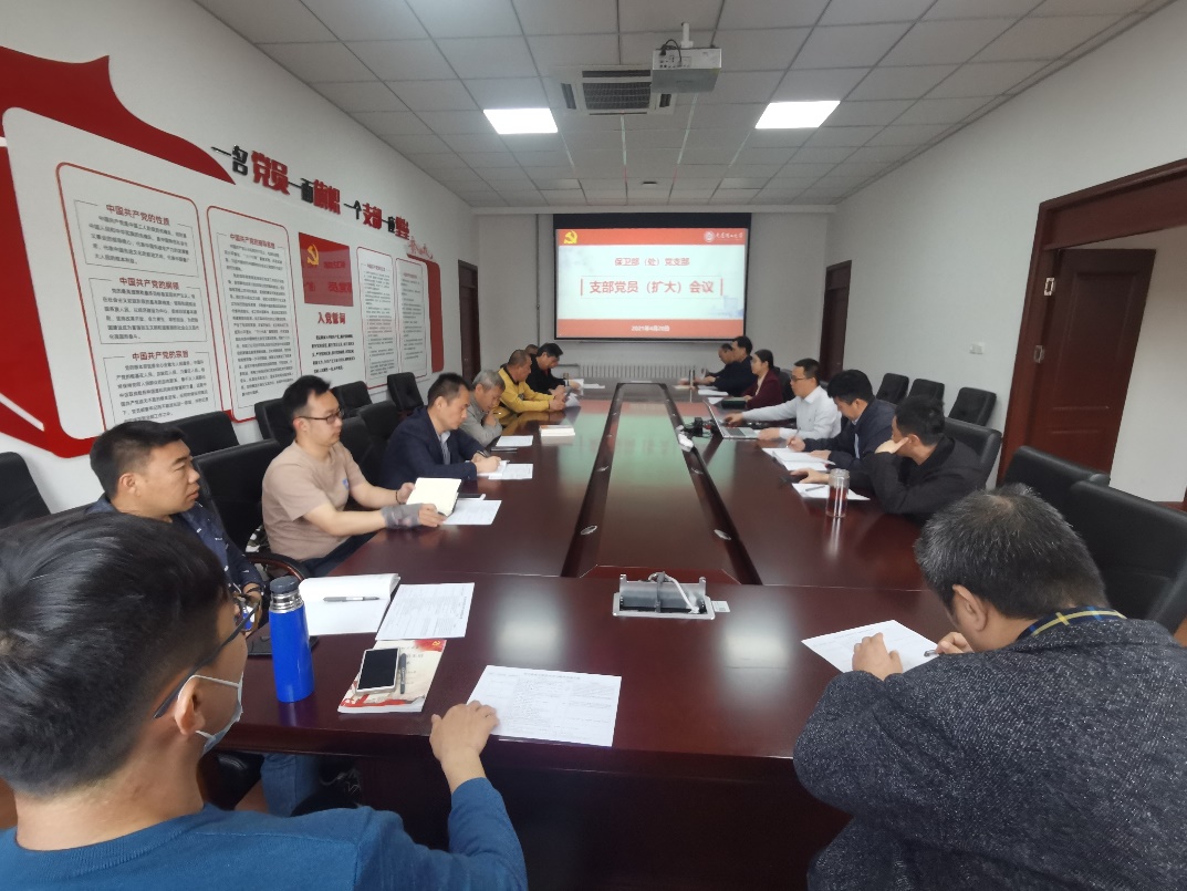 根据机关党委党史学习教育动员大会要求,4月20日上午,保卫处党支部召开4月支部党员(扩大)会议,落实党史学习任务,开展专题研讨活动,支部全体人员参加会议。