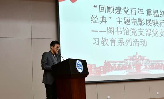 启动仪式上,王哲同志介绍了此次活动的目的及意义。他表示,自党史学习教育广泛开展以来,图书馆努力发挥文献、空间、服务等方面的优势,一方面努力做好图书馆党支部的党史学习教育特色活动,另一方面也希望挖掘图书馆的各项资源,努力为师生们营造党史学习教育氛围,发挥图书馆文化育人职能。为此,图书馆开展了系列活动,包括“回顾建党百年 重温红色经典”主题电影展映活动及党史学习教育专题文献展区等,全方位立体化推介推送党史党建信息,打造书香浓郁、随手可得的党史学习阵地,助力党史学习教育。