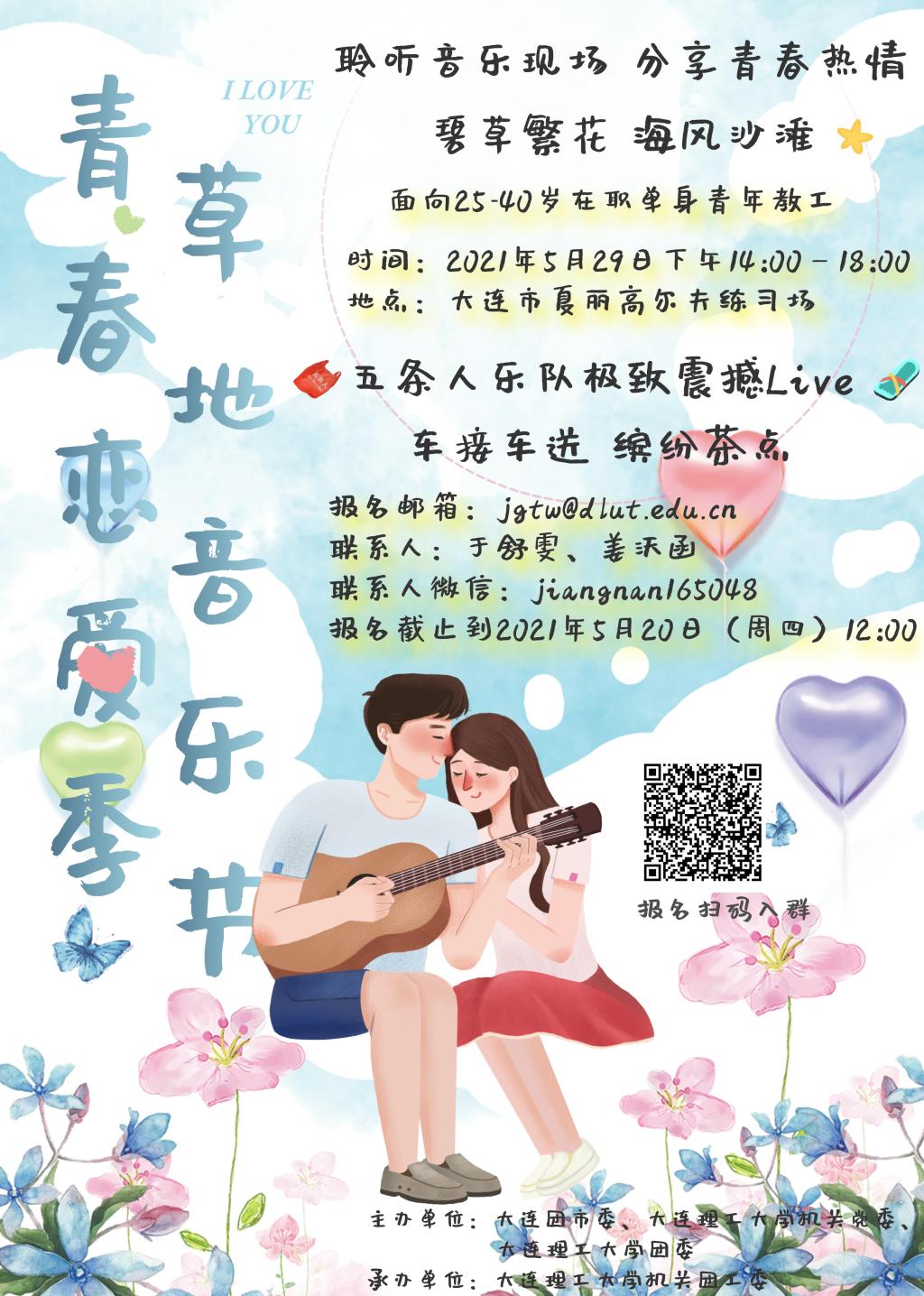 为更好地发挥团组织服务青年的作用,拓宽单身青年教工沟通交流渠道,丰富青年教工业余文化生活,学校联合大连团市委共同举办“青春恋爱季 草地音乐节”单身青年教工联谊活动。现开始活动报名。