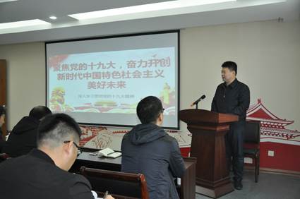 本着深入学习十九大、贯彻落实十九大精神,我校校园规划与管理办公室翟钢军主任根据十九大精神,做“聚焦党的十九大,奋力开创新时代中国特色社会主义美好未来”主题讲座。他主要从党的十九大报告简介和重要意义、十九大报告的主要内容以及做合格党员、不忘初心、永远跟党走三个部分细致的解读了党的十九大交流了十九大报告的精神。他特意结合实际,对报告提到的坚定“四个自信”“优先发展教育事业”“四个伟大”“提高保障和改善民生水平”等相关内容进行了重点介绍。